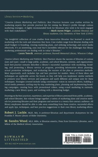 Drawing on the best practices, experience, and expertise of library personnel from public, academic, and school libraries, this volume brings together a variety of marketing plans and creative methods for promoting libraries and their programs and services to a twenty-first century audience.