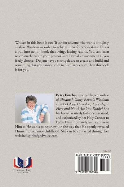 Written in this book is raw Truth for anyone who wants to rightly analyze Wisdom in order to achieve their forever destiny. This is a put-into-action book that brings lasting results. You can learn to creatively create your present and Eternal environment as you freely choose. Do you have a strong desire to create and build and something that you cannot seem to dismiss or erase? Then this book is for you.