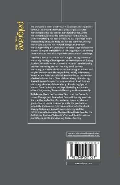 Creative Marketing has been written in response to the continued failure to address the theory/practice gap in marketing management. The art world is full of creativity, yet existing marketing theory continues to prescribe formulaic, stepwise processes for marketing success. Rather than perpetuating the belief in the value of traditional marketing frameworks, this book draws on a diverse range of disciplines to inspire entrepreneurial thinking and practice among those marketers who wish to push the boundaries of knowledge and convention. Creative Marketing gets back to how best to support individuals as well as small, medium and micro-enterprises through new marketing approaches.