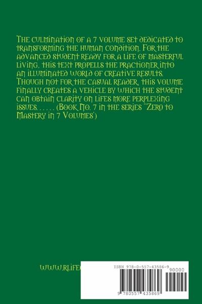 The culmination of a 7 volume set dedicated to transforming the human condition. For the advanced student ready for a life of masterful living, this text propels the practitioner into an illuminated world of creative results. Though not for the casual reader, this volume finally creates a vehicle by which the student can obtain clarity on life's more perplexing issues. . . . . . (Book No. 7 in the series "Zer0 to Mastery in 7 Volumes')