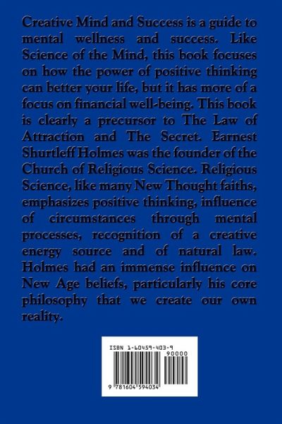Creative Mind and Success is a guide to mental wellness and success. Like Science of the Mind, this book focuses on how the power of positive thinking can better your life, but it has more of a focus on financial well-being. This book is clearly a precursor to The Law of Attraction and The Secret. Earnest Shurtleff Holmes was the founder of the Church of Religious Science. Religious Science, like many New Thought faiths, emphasizes positive thinking, influence of circumstances through mental processes, recognition of a creative energy source and of natural law. Holmes had an immense influence on New Age beliefs, particularly his core philosophy that we create our own reality.