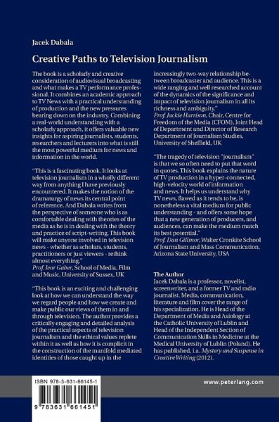«In an age when the TV business is a global exchange of images and cultural connections, Jacek Dabala has examined the phenomenon with an internationalist's eye. He connects American observers with intellectuals from Europe to examine the dynamics, the ethics and the demands of journalism in the 21st Century. This is the kind of book that demands thinking on the part of young visual journalists and one that can stimulate an interesting debate involving theory and practice.» (Prof. Susan King, Dean, John Thomas Kerr Distinguished Professor School of Journalism and Mass Communication, UNC Chapel Hill, USA)