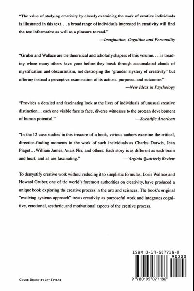 To demystify creative work without reducing it to simplistic formulas, Doris Wallace and Howard Gruber, one of the world's foremost authorities on creativity, have produced a unique book exploring the creative process in the arts and sciences. The book's original "evolving systems approach" treats creativity as purposeful work and integrates cognitive, emotional, aesthetic, and motivational aspects of the creative process. Twelve revealing case studies explore the work of such diverse people as William Wordsworth, Albert Einstein, Jean Piaget, Anais Nin, and Charles Darwin. The case study approach is discussed in relation to other methods such as biography, autobiography, and psychobiology. Emphasis is given to the uniqueness of each creative person; the social nature of creative work is also treated without losing the sense of the individual. A final chapter considers the relationship between creativity and morality in the nuclear age. In addition to developmental psychologists and cognitive scientists, this study offers fascinating insights for all readers interested in the history of ideas, scientific discovery, artistic innovation, and the interplay of intuition, inspiration, and purposeful work.