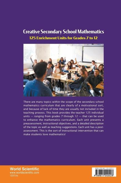 There are many topics within the scope of the secondary school mathematics curriculum that are clearly of a motivational sort, and because of lack of time they are usually not included in the teaching process. This book provides the teacher 125 individual units - ranging from grades 7 through 12 - that can be used to enhance the mathematics curriculum. Each unit presents a preassessment, instructional objectives, and a detailed description of the topic as well as teaching suggestions. Each unit has a post-assessment. This is the sort of instructional intervention that can make students love mathematics!