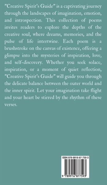 "Creative Spirit's Guide" is a captivating journey through the landscapes of imagination, emotion, and introspection. This collection of poems invites readers to explore the depths of the creative soul, where dreams, memories, and the pulse of life intertwine. Each poem is a brushstroke on the canvas of existence, offering a glimpse into the mysteries of inspiration, love, and self-discovery. Whether you seek solace, inspiration, or a moment of quiet reflection, "Creative Spirit's Guide" will guide you through the delicate balance between the outer world and the inner spirit. Let your imagination take flight and your heart be stirred by the rhythm of these verses. Copyright © 2024 Book Fairy Publishing