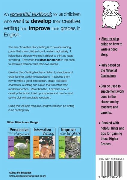 Creative Story Writing (ages 9-14) Teach Your Child To Write Good English series This edition includes ‘Creative Writing Workbook’. Creative Story Writing is the essential guide for all students wanting to develop their literacy skills and improve their grades in English assignments and examinations. It is the first in the Teach Your Child to Write Good English series. The book will guide students through the story writing process, as if they had a tutor by their side. This book is designed to help the child with thinking up ideas, providing starting points for writing, structuring and organising their writing into paragraphs. It features writing a good introduction with characters, setting and plot, building up suspense and winding up the plot with a suitable resolution. Attention is given to making writing more interesting by varying sentence types, using punctuation and good grammar. The student will investigate different narrative structures for writing stories, exploring various viewpoints so they can decide if they write in first or third person. They will learn to evoke mood and atmosphere by using good vocabulary. Creative Story Writing includes an exciting range of model answers and sample texts written by children and provides practice questions to test them. Common errors made by students are highlighted and corrected. It is packed with vital hints and tips on gaining those top grades. Creative Story Writing is ideal for working through at home, supplementing school work. By working methodically through this book the students will grow in confidence and will learn to enjoy writing. Creative Story Writing has been written by an experienced teacher and tutor and written with the needs of children in mind. This book concentrates specifically and in depth on Creative Writing required by the National Curriculum, providing everything needed to stimulate a child to write imaginatively. It is specifically targeted at children aged 9-14 years.