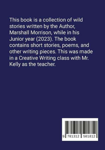 Dear Reader, This book is a collection of short stories, poems, and other works made by myself, Marshall Morrison. I made them in the Spring term (trimester 3) of the 2022-2023 school year. I wrote these as a junior at Philomath High School. These short stories are experimental writings of different forms. Please understand that none of these stories, poems, or other works are professional. Thank you for taking the time to read this book. I hope you enjoy it!