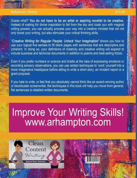 Guess what? You do not have to be an artist or aspiring novelist to be creative. Instead of waiting for divine inspiration to fall from the sky and cloak you with magical writing powers, you can actually process your way into a creative mindset that will not only boost your writing, but also stimulate your critical thinking skills. "Creative Writing for Regular People: Unlock Your Imagination" shows you how to use your logical five senses to fill blank pages with sentences that are descriptive and coherent. In doing so, your definitions of creativity and creative writing will expand to include business and technical documents in addition to poems and best-selling fiction. Even if you prefer numbers or science and bristle at the idea of expressing emotions or recording sensory observations, you can use certain techniques to 'work' yourself into a more imaginative headspace before sitting to write a short story, an incident report or a grant proposal. So, if you hate to write, or feel that you absolutely cannot think like an award-winning author or blockbuster screenwriter, the techniques in this book will help you move from general, flat sentences to detailed written documents.