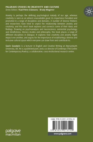 Anxiety is perhaps the defining psychological malady of our age, whereas creativity is seen as an almost unassailable good, its importance heralded and promoted in a range of disciplines and domains. A number of diverse thinkers and researchers have tried to unpick the relationship between anxiety and creativity, and this short book explores and connects some of their ideas and findings. Drawing on psychoanalysis and neuroscience, existential psychology and mindfulness, literary studies and philosophy, this book places a range of different disciplines in dialogue. It explores how creativity and anxiety might impact one another, and argues for the importance of establishing a diverse and inclusive cultural space which everyone can draw from and contribute to.