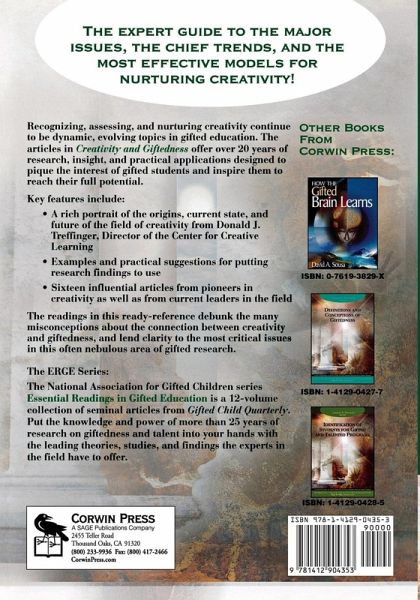 Donald J. Treffinger is director of the Center for Creative Learning in Sarasota, Florida, and editor-in-chief of Parenting for High Potential, NAGC's quarterly magazine for parents. He has previously served as a member of the faculty at Buffalo State University College, the University of Kansas, and Purdue University. He has been actively involved in NAGC for many years and served as a member of the Board of Directors from 1980 to 1984. Treffinger received the NAGC Distinguished Service Award in 1984 and the E. Paul Torrance Creativity Award in 1995. His primary interests are in the areas of creativity and creative problem solving, the levels-of-service approach to programming for talent development, and problem-solving style. He is the author or coauthor of more than 350 publications, including Creativity and Giftedness. His most recent books are Talent Development: The Levels of Service Approach, the three-volume series Thinking with Standards: Preparing for Tomorrow, and Creative Problem Solving: An Introduction. Sally M. Reis is a professor and the department head of the Educational Psychology Department at the University of Connecticut where she also serves as principal investigator of the National Research Center on the Gifted and Talented. She was a teacher for 15 years, 11 of which were spent working with gifted students on the elementary, junior high, and high school levels. She has authored more than 130 articles, 9 books, 40 book chapters, and numerous monographs and technical reports. Her research interests are related to special populations of gifted and tal-ented students, including: students with learning disabilities, gifted females and diverse groups of talented students. She is also interested in extensions of the Schoolwide Enrichment Model for both gifted and talented students and as a way to expand offerings and provide general enrichment to identify talents and potentials in students who have not been previously identified as gifted. She has traveled extensively conducting workshops and providing profes-sional development for school districts on gifted education, enrichment programs, and talent development programs. She is co-author of The Schoolwide Enrichment Model, The Secondary Triad Model, Dilemmas in Talent Development in the Middle Years, and a book published in 1998 about women's talent development titled Work Left Undone: Choices and Compromises of Talented Females. Sally serves on several editorial boards, including the Gifted Child Quarterly, and is a past president of the National Association for Gifted Children.