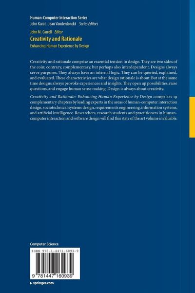 Creativity and Rationale: Enhancing Human Experience by Design comprises 19 complementary chapters by leading experts in the areas of human-computer interaction design, sociotechnical systems design, requirements engineering, information systems, and artificial intelligence. Researchers, research students and practitioners in human-computer interaction and software design will find this state of the art volume invaluable.