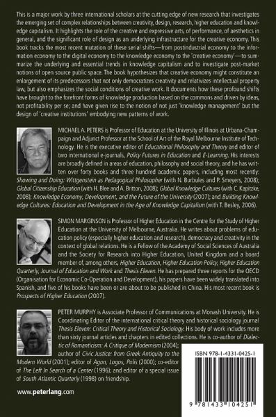 "This insightful and engaging book addresses questions of pressing significance for educationists in the twenty-first century. Peters, Marginson and Murphy provide a perceptive, well-argued account of economic, political and intellectual changes under global knowledge capitalism. They highlight the importance of creativity, imagination and education in the growth and ongoing development of knowledge societies. In these uncertain times, thoughtful, rigorous analysis of the kind demonstrated in this volume is much needed. 'Creativity and the Global Knowledge Economy' looks to the future while acknowledging the past. This book makes a valuable contribution to this growing field of research and deserves wide reading." (Peter Roberts, Professor of Education, University of Canterbury, New Zealand)