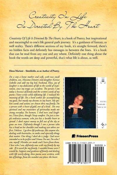 Creativity Of Life Is Directed By The Heart, is a book of Poetry, but inspirational and meaningful to one's life general path journey. It's a guidance of fantasy, as well reality. There's different sections of my book, it's straight forward, there's no hidden facts and definitely has messages in between the lines. It's a book that can be read from any one and any where. Definitely one thing about the book the words are deep and powerful, that's what life is about, as well....