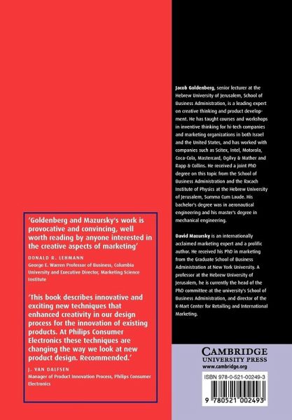 Dr Jacob Goldenberg, senior lecturer at the Hebrew University of Jerusalem School of Business Administration, is a leading expert on creative thinking and product development. He has taught courses and workshops in inventive thinking for hi-tech companies and marketing organizations in both Israel and the United States, and has worked with companies such as Scitex, Intel, Motorola, Coca-Cola, Mastercard, Ogilvy & Mather and Rapp & Collins. He received a joint Ph.D. degree on this topic from the School of Business Administration and the Racach Institute of Physics at the Hebrew University of Jerusalem, Summa Cum Laude. His bachelor's degree was in aeronautical engineering and his master's degree in mechanical engineering. Jacob published papers in leading journals, including Science, the Journal of Marketing Research, Marketing Science, Management Science, and others.