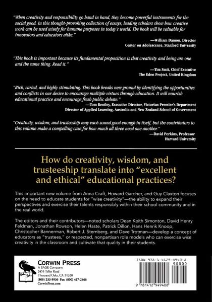 Creativity and wisdom as fields of scholarship and as they relate to classroom practice are the focus of this important new volume from Anna Craft, Howard Gardner, Guy Claxton, and their coauthors Mihaly Csikzsentmihalyi, William Damon, David Henry Feldman, Helen Haste, David Perkins, Dean Keith Simonton, Robert Sternberg, and others. This distinguished group of educators and scholars examine the topic within its social and cultural context; within the context of cognitive psychology and the neurosciences; and within the context of what it means to do work that is both excellent and ethical within the professions, most importantly as educators. This thought-provoking volume will be essential reading for all members of the educational community in the US, the UK, and elsewhere.An international panel of distinguished experts explores the balance between creativity and wise action, and calls for educators to nurture "wise creativity" in their students.