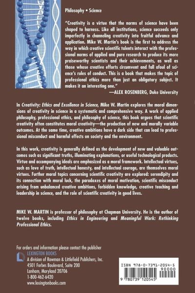 Creativity explores the moral dimensions of creativity in science in a systematic and comprehensive way. A work of applied philosophy, professional ethics, and philosophy of science, the book argues that scientific creativity often constitutes moral creativity_the production of new and morally variable outcomes. At the same time, creative ambitions have a dark side that can lead to professional misconduct and harmful effects on society and the environment.
