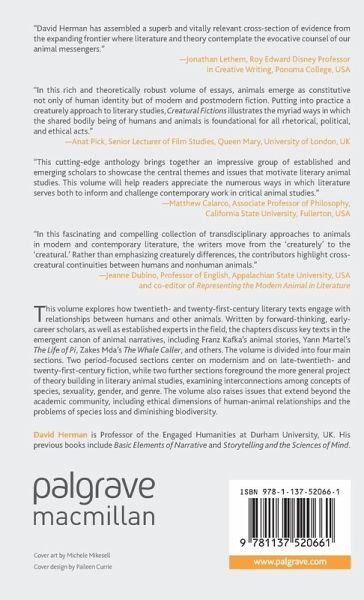 "David Herman has assembled a superb and vitally relevant cross-section of evidence from the expanding frontier where literature and theory contemplate the evocative counsel of our animal messengers." - Jonathan Lethem, Roy Edward Disney Professor in Creative Writing, Ponoma College, USA