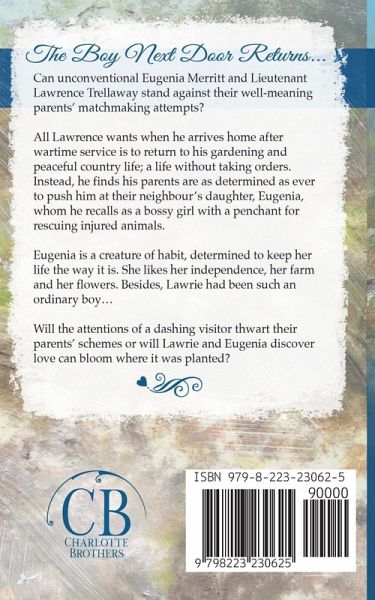 "Oh no," thought Eugenia, "It must be that he had returned." Can unconventional Eugenia Merritt and Lieutenant Lawrence Trellaway stand against their well-meaning parents' matchmaking attempts? All Lawrie wants when he arrives home after wartime service is to return to his gardening and peaceful country life; a life without taking orders. Instead, he finds his parents are as determined as ever to push him at their neighbours' daughter, Eugenia, whom he remembers as a bossy girl with a penchant for rescuing injured animals. Eugenia is a creature of habit, determined to keep her life the way it is. She likes her independence, her farm and her flowers. Besides, Lawrie had been such an ordinary boy... Will the attentions of a dashing visitor thwart their parents' schemes or will Lawrie and Eugenia discover love can bloom where it was planted?