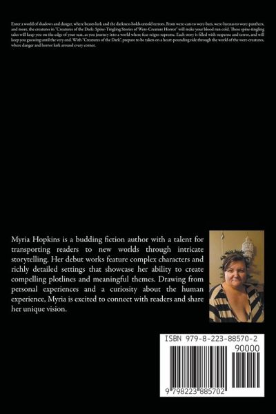 Get ready to be scared out of your wits with "Creatures of the Dark: Spine-Tingling Stories of Were-Creature Horror". This chilling collection features a range of were-creatures that will have your heart racing and your spine tingling. From were-cats to were-bats, were-hyenas to were-panthers, and more, these stories will take you on a journey into the shadows where the creatures of the night dwell. Each story is filled with suspense, terror, and the kind of horror that will leave you checking over your shoulder long after you've finished reading. With twists and turns that will keep you guessing until the very end, "Creatures of the Dark" is perfect for anyone who loves a good scare. So, turn off the lights, curl up with this book, and prepare to be terrified by the beasts that lurk in the darkness.