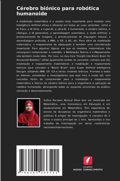 A modelação matemática é o aspeto mais importante para modelar uma Inteligência Artificial eficaz e eficiente em todas as suas vertentes, como a IA fraca, a IA forte, a super-IA, a ultra-IA, o humanoide, o cérebro biónico, o ciborgue, a IA generativa, a aprendizagem automática, a visão artificial, o processamento de imagens, o processamento de linguagem natural, a aprendizagem profunda, a RNA, a GP, a AG, etc. Para além da modelação matemática, o mapeamento da adequação é também uma consideração importante. Para algumas lógicas em que os modelos matemáticos não conseguem compreender a exatidão, a Modelação Teórica e o Mapeamento são também muito úteis. Por isso, no meu livro "Insight into Bionic Brain for Humanoid Robotics" utilizei igualmente ambos os conceitos, sempre que útil, modelação e mapeamento matemáticos e modelação e mapeamento teóricos para conceber o "Bionic Brain" para Super Artificial Intelligence Designs utilizando ANN, GP, GA e vários modelos teóricos. Prometo a todos os leitores, estudantes e investigadores que este livro é muito útil, com conceitos fáceis de compreender para a modelação e mapeamento matemático e teórico do cérebro biónico para a engenharia e aplicação da robótica humanoide, abrangendo todos os aspectos essenciais da análise, conceção e desenvolvimento.