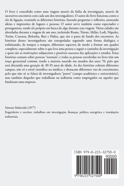 O livro é concebido como uma viagem através da Itália da investigação, através de sucessivos encontros com cada um dos investigadores. O autor do livro funciona como o elo de ligação, reunindo as diferentes histórias, fazendo perguntas e reflexões, anotando ideias e impressões de lugares e pessoas. O autor serve também como espectador e protagonista, sendo ele próprio em busca de algo durante esta viagem. Várias cidades são abordadas durante a viagem de um ano, incluindo Roma, Trieste, Milão, Lodi, Nápoles, Turim, Cosenza, Bolonha, Bari e Pádua, que são o pano de fundo dos encontros. As histórias destes investigadores são extrapoladas seguindo uma forma dialógica e enfatizando, de tempos a tempos, diferentes aspectos de modo a formar um quadro completo, especialmente sobre o que leva uma pessoa a seguir o caminho da investigação e quais são as motivações subjacentes e possíveis sucessos das aplicações e estudos. Estas histórias contam sobre pessoas "normais", e todas as pessoas envolvidas no livro têm um traço geracional comum, tendo a maioria nascido em meados dos anos 70, pelo que será discutida uma geração de 30-35 anos de idade. As dez histórias cobrem diferentes campos, não só a nível científico ou médico, e destacam diferentes vias de crescimento, pelo que não só se falará de investigadores "puros" (campo académico e universitário), mas também daqueles que trabalham na indústria como empregados ou aqueles que fundaram uma empresa.