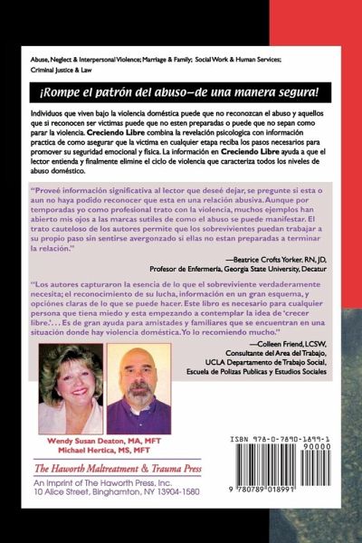 Combining psychological insight with practical safety information, this helpful Spanish-language manual guides the reader toward understandingand eventually endingthe vicious cycle of wooing, tension, violence, and remorse that characterizes all levels of domestic violence. It outlines a series of steps abused women can take to ensure their emotional and physical safety. Creciendo Libre offers both practical and psychological resources, including lists of abusive behaviors from ridiculing family members to physical violence, common rationalizations for abuse used by both victims and perpetrator, and discussions of protection orders and other legal matters. In this book, you'll find detailed preparations and safety precautions that may make leaving less dangerous, advice on what to take with you when you leave, and guidelines for establishing safe relationships in the future. A companion volume available separately, A Therapist's Guide to Growing Free (available in English only), offers therapists a comprehensive outline of the issues, tasks, and goals involved in treatment with victims and survivors.