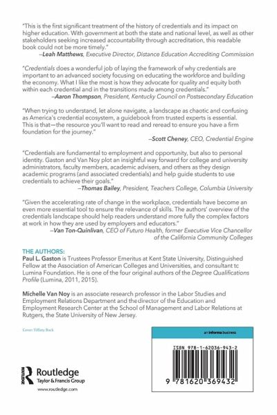 "Credentials does a wonderful job of laying the framework of why credentials are important to an advanced society focusing on educating the workforce and building the economy. By looking back as a way to look forward, Paul Gaston and Michele Van Noy