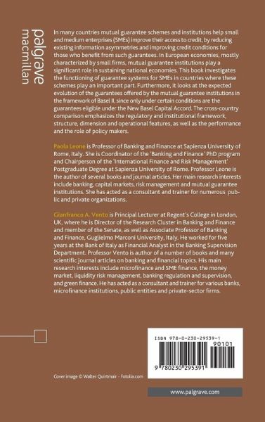 PAOLA LEONE is Professor of Banking and Finance at Sapienza University of Rome, Italy. She is Coordinator of the 'Banking and Finance' PhD program and Chairperson ofthe'International Finance and Risk Management' Postgraduate Degree at 'Sapienza' University of Rome. Professor Leone is the author of several books and journal articles. Her main research interests include: banking, capital markets, risk management, mutual guarantee institutions. She has acted as a consultant and trainer for various financial intermediaries, public and private entities and consulting firms. GIANFRANCO A. VENTO is Associate Professor of Banking and Finance, Guglielmo Marconi University,Italy and Principal Lecturer in Banking & Finance at Regent's College in London, where he is Director of the Research Cluster in Banking & Finance and member of the Senate. He worked for five years at the Bank of Italy as Financial Analyst in the Banking Supervision Department. Professor Vento is author of four books and many scientific journal articles on banking and financial topics. His main research interests include: Microfinance and SME finance; money market; liquidity risk management; banking regulation and supervision; green finance. He has acted as a consultant and trainer for various banks, microfinance institutions, public entities and consulting firms.