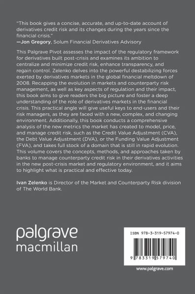 This Palgrave Pivot assesses the impact of the regulatory framework for derivatives built post-crisis and examines its ambition to centralize and minimize credit risk, enhance transparency, and regain control. Zelenko delves into the powerful destabilizing forces exerted by derivatives markets in the global financial meltdown of 2008. Recapping the evolution in markets and counterparty risk management, as well as key aspects of regulation and their impact, this book aims to give readers the big picture and foster a deep understanding of the role of derivatives markets in the financial crisis. This practical angle will give useful keys to end-users and their risk managers, as they are faced with a new, complex, and changing environment. Additionally, this book conducts a comprehensive analysis of the new metrics the market has created to model, price, and manage credit risk, such as the Credit Value Adjustment (CVA), the Debt Value Adjustment (DVA), or the Funding Value Adjustment(FVA), and takes full stock of a domain that is still in rapid evolution. This volume covers the concepts, methods, and approaches taken by banks to manage counterparty credit risk in their derivatives activities in the new post-crisis market and regulatory environment, and it aims to highlight what is practical and effective today.
