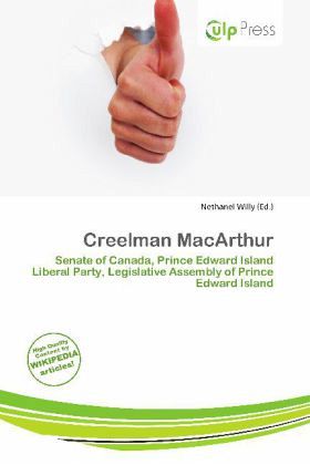 Please note that the content of this book primarily consists of articles available from Wikipedia or other free sources online. Creelman MacArthur was a senator in the Parliament of Canada representing Prince Edward Island. He was a businessman in Summerside. Born and educated in Summerside, he was the son of Jeremiah MacArthur and Ellen Donald. MacArthur was married twice: to Hannah Lois Beattie in 1899 and to Muriel Mabel Lee in 1937. He was elected to the Summerside Town Council in 1915, serving until 1919 when he became a Liberal member of the Legislative Assembly for the district of 5th Prince.