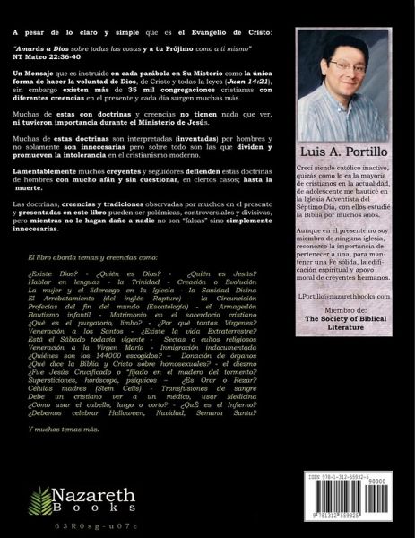 El Evangelio (Mensaje) de Cristo es muy simple y sólo consta de Dos Mandamientos: 'Ama a Dios sobre todo y a tu prójimo como a ti mismo', NT Mateo 22:34-40. A Pesar de esto, son cientos de denominaciones cristianas que en el presente predican creencias y doctrinas que Cristo nunca predicó, ni practicó en Su Ministerio en la Tierra, pero más importante aún, son cosas que ni Dios el Padre ni su Hijo Cristo requieren que cumplas. NT Juan 14:21 Este libro señala las creencias y doctrinas que, aunque no son falsas, sin embargo, son completamente innecesarias, esto es por supuesto, no porque lo dice otro grupo religioso, sino Cristo. NOTA: El Grupo Nazareth está compuesto por creyentes cristianos independientes, y de ninguna manera estamos promoviendo a ninguna denominación religiosa, ni señalando qué iglesia es verdadera o a cuál debemos asistir.