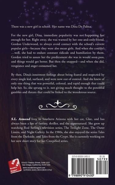 There was a new girl in school. Her name was Dina De Palma. For the new girl, Dina, immediate popularity was not happening fast enough for her. Right away, she was warned by her one-and-only friend, Gordon Underwood, to always avoid contact with the school's current popular girls---because they were also mean girls. And when she couldn't ...well, she had to endure constant ridicule and humiliation by them. Gordon tried to assure her the predicament she was in would soon pass, and things would get better. But then she snapped---and when she did, vengeance and anger consumed her. By then, Dina's innermost feelings about being feared and respected by every single kid, surfaced, and were now out of control. And she knew of only one thing that was powerful, colossal, and rapid enough that could help her. So, she sprung to it, not giving much thought to the potential gambles and threats that could be linked to the wonderous source.