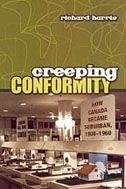 Creeping Conformity, the first history of suburbanization in Canada, provides a geographical perspective - both physical and social - on Canada's suburban past. Shaped by internal and external migration, decentralization of employment, and increased use of the streetcar and then the automobile, the rise of the suburb held great social promise, reflecting the aspirations of Canadian families for more domestic space and home ownership. After 1945 however, the suburbs became stereotyped as a generic, physically standardized, and socially conformist type of place. By 1960, they had grown further away - physically and culturally - from their respective parent cities, and brought unanticipated social and environmental consequences. Government intervention too played a key role, causing a change in perception and encouraging mortgage indebtedness, amortization, and building and subdivision regulations to become the suburban norm. Suburban homes became less affordable and more standardized, and, for the first time, Canadian commentators began to speak disdainfully of 'the suburbs, ' or simply 'suburbia.' Well researched, compellingly argued, and beautifully illustrated with maps and photos, Creeping Conformity traces how these perceptions emerged to reflect a new suburban reality.