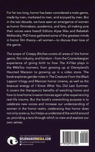 For far too long, horror has been considered a male genre, made by men, marketed to men, and enjoyed by men. But in the last decade, we have seen an emergence of women as horror filmmakers, academics, and fans, all making sure their voices were heard! Editors Alyse Wax and Rebekah McKendry, PhD have gathered some of the greatest minds in horror film theory-all women-to discuss their love of the genre. The scope of Creepy Bitches covers all areas of the horror genre, film industry, and fandom - from the Cronenbergian experience of giving birth to how The X-Files plays in the #MeToo moment; from growing up at Disneyland's Haunted Mansion to growing up in a video store. The book explores gender roles in The Creature From the Black Lagoon trilogy and Mexican horror cinema, as well as the bisexual energy of I Know What You Did Last Summer. It covers the therapeutic benefits of watching horror and how to love home invasion movies again after experiencing real-life trauma. But the book's overarching purpose is to celebrate new voices and increase our understanding of women in the horror realm, celebrating that horror does not only scare us, but helps us understand the world around us, providing a lens through which to view and explore our own selves.