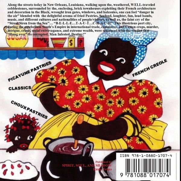 Along the streets today in New Orleans, Louisiana, walking upon the, weathered, WELL-traveled cobblestones, surrounded by the, enclosing, brick townhouses exploiting their French architecture and decoration in the Black, wrought iron gates, windows, and balconies, one can feel "danger in the air" blended with the delightful aroma of fried Pastries, Seafood, laughter, fun, loud bands, music, and different cultures and nationalities of people/visitors, as well as, the faint cry of the "Street Siren from the Sea"... "B-E-L-L-E...T-A-U-T...C-H-A-U-D!" This illustrious port city, during the antebellum South's Empire in international trade, commerce, and Cotton crops, murder, intrigue, crime, social extravagance, and extreme wealth, was sentenced with the verdict that "Hung over" its corrupted, Man Infested, Destiny!" Spanish and French Royalty, immigrants, nations, principalities, privateers, buccaneers, ladies of the evening, and, "a den of thieves," pirates, roamed the market place, daily, in search of money and lots of it. New Orleans was the capital of the Americas and the "heartbeat" of the world's economy. Slavery, legal and illegal gambling of Large, sums of money, products, and Large, plantations of land, and, a Civil and Political War, were to fall, as Rome... "The glorious SOUTH, polluted from within." Enjoy her memories of a time lost, as you bake these Recipes in your kitchen from the CREOLE/CAJUN lifestyle, YOU requested.