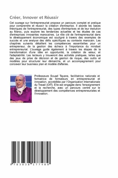 Cet ouvrage sur l'entrepreneuriat propose un parcours complet et pratique pour comprendre et réussir la création d'entreprise. Il aborde les bases théoriques de l'entrepreneuriat, des types d'entreprises et de leur évolution au Maroc, puis explore les tendances actuelles et les études de cas d'entreprises innovantes marocaines. Le rôle clé de l'entrepreneuriat dans le développement économique est souligné à travers des exemples de succès et une analyse des défis spécifiques au contexte marocain. Les chapitres suivants détaillent les compétences essentielles pour un entrepreneur, de la gestion des échecs à l'importance du mindset entrepreneurial. L'ouvrage guide également à travers les étapes de la transformation d'une idée en opportunité, la création de valeur, et l'adaptabilité. Les lecteurs y trouveront des activités pratiques, telles que des jeux de prise de décision et de gestion de risque, des outils et modèles pour structurer leur démarche, et un accompagnement pour concevoir leur business plan et modèle d'affaires.