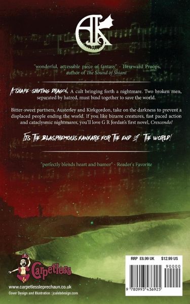 "Crescendo!" is the tale of how we respond to darkness. Do we embrace it and try to wonder and steal from it. Or do we run from it, happy to keep it at a distance. Kirkgordon, a methodical, former bodyguard is reunited with Austerley, Professor of the Occult and delver into all things mysterious. Blaming Austerley for his marital problems and nightmare episodes, Kirkgordon finds himself teamed up with this shambling hulk to recover a dark music manuscript which can open up a portal for unimaginable horror to stalk this earth. Kirkgordon's pity for the obsessive Austerley is pushed to the limit and his creative thinking are stretched to the full in this wild romp across the globe, culminating in an unholy raising of an Eldar being. An 800 year old ice maiden, in dark leathers with a white hot staff and jet black wings, joins the hunt to provide the lid on a slapstick threesome. With the most finest of Her Majesty's Secret Agents, a three headed dragon and mutated islanders a-plenty, "Crescendo!" leaps from the USA to Russia, from Ireland to the Islands of Scotland. Whether you seek to understand the weird evil or destroy it, you'll never see the darkness in the same light again.