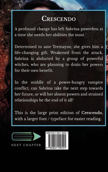 A profound change has left Sabrina powerless at a time she needs her abilities the most. Determined to save Tremayne, she gives him a life-changing gift. Weakened from the attack, Sabrina is abducted by a group of powerful witches, who are planning to drain her powers for their own benefit. In the middle of a power-hungry vampire conflict, can Sabrina take the next step towards her future, or will her absent powers and strained relationships be the end of it all? This is the large print edition of Crescendo, with a larger font / typeface for easier reading.