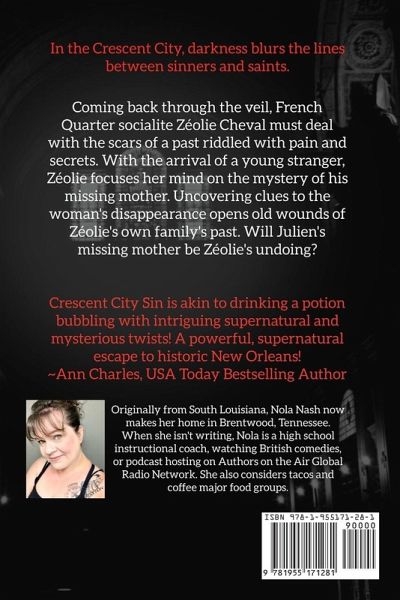 Originally from South Louisiana, Nola Nash now makes her home in Brentwood, Tennessee. She grew up in Baton Rouge, but her biggest writing inspiration was the city of New Orleans, which gave her a love of the magic, mystery, and history at an early age. When she isn't writing, Nola is an online high school instructional coach and podcast host on Dead Folks Tales, BYOB, and The Otherworlds for Authors on the Air Global Radio Network. She is the author of five books: Crescent City Moon, Crescent City Sin, Traveler, Watcher, and House of Mirrors.