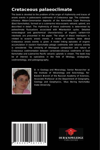 The book is devoted to the problem of the origin of rhythmicity and traces of anoxic events in paleoceanic sediments of Cretaceous age. The carbonate-siliceous Albian-Cenomanian deposits of the Kamchatka Cape Peninsula (East Kamchatka), formed on a submarine intra-oceanic volcanic upland, are described in detail. The rhythmicity of these sediments is determined by paleoclimate fluctuations associated with Milankovitch cycles. Detailed mineralogical and geochemical characteristics of organic carbon-rich interbeds are presented in the paper. The origin of these interlayers is related to oceanic anoxic events. A review of modern ideas about Cretaceous anoxic events is given. A model linking episodes of organic accumulation in eastern Kamchatka pelagic sediments with volcanic activity is considered. The similarity of lithological composition and nature of Cretaceous sedimentation between carbonate-siliceous sediments of East Kamchatka and submarine Pacific volcanic uplands is shown. The book may be of interest to specialists in the field of lithology, stratigraphy, sedimentology, and paleogeography.