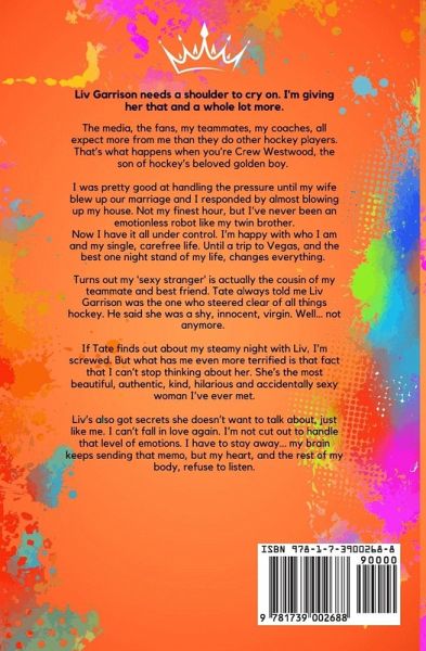 Liv Garrison needs a shoulder to cry on. I'm giving her that and a whole lot more. The media, the fans, my teammates, my coaches, all expect more from me than they do other hockey players. That's what happens when you're Crew Westwood, the son of hockey's beloved golden boy. I was pretty good at handling the pressure until my wife blew up our marriage and I responded by almost blowing up my house. Not my finest hour, but I've never been an emotionless robot like my twin brother. Now I have it all under control. I'm happy with who I am and my single, carefree life. Until a trip to Vegas, and the best one night stand of my life, changes everything. Turns out my 'sexy stranger' is actually the cousin of my teammate and best friend. Tate always told me Liv Garrison was the one who steered clear of all things hockey. He said she was a shy, innocent, virgin. Well... not anymore. If Tate finds out about my steamy night with Liv, I'm screwed. But what has me even more terrified is that fact that I can't stop thinking about her. She's the most beautiful, authentic, kind, hilarious and accidentally sexy woman I've ever met. Liv's also got secrets she doesn't want to talk about, just like me. I can't fall in love again. I'm not cut out to handle that level of emotions. I have to stay away... my brain keeps sending that memo, but my heart, and the rest of my body, refuse to listen.