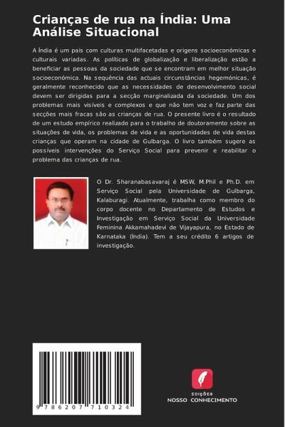 A Índia é um país com culturas multifacetadas e origens socioeconómicas e culturais variadas. As políticas de globalização e liberalização estão a beneficiar as pessoas da sociedade que se encontram em melhor situação socioeconómica. Na sequência das actuais circunstâncias hegemónicas, é geralmente reconhecido que as necessidades de desenvolvimento social devem ser dirigidas para a secção marginalizada da sociedade. Um dos problemas mais visíveis e complexos e que não tem voz e faz parte das secções mais fracas são as crianças de rua. O presente livro é o resultado de um estudo empírico realizado para o trabalho de doutoramento sobre as situações de vida, os problemas de vida e as oportunidades de vida destas crianças que operam na cidade de Gulbarga. O livro também sugere as possíveis intervenções do Serviço Social para prevenir e reabilitar o problema das crianças de rua.