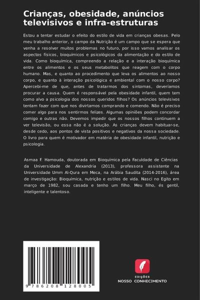 Estou a tentar estudar o efeito do estilo de vida em crianças obesas. Pelo meu trabalho anterior, o campo da Nutrição é um campo que se espera que venha a resolver muitos problemas no futuro, por isso vamos analisar os aspectos físicos, bioquímicos e psicológicos da alimentação e do estilo de vida. Como bioquímica, compreendo a relação e a interação bioquímica entre os alimentos e os seus metabolitos que reagem com o corpo humano. Mas, e quanto ao procedimento que leva os alimentos ao nosso corpo, e quanto à interação psicológica e ambiental com o nosso corpo? Apercebi-me de que, antes de tratarmos dos sintomas, deveríamos procurar a causa. Quem é responsável pela obesidade infantil, quem tem como alvo a psicologia dos nossos queridos filhos? Os anúncios televisivos tentam fazer com que nos divirtamos comprando e comendo. Não é preciso comer algo para nos sentirmos felizes. Algumas opiniões podem concordar comigo e outras não. Devemos impedir que os nossos filhos continuem a ver televisão, ou essa não é a solução. As crianças devem habituar-se, desde cedo, aos pontos de vista positivos e negativos da nossa sociedade. O livro para quem é motivador em matéria de obesidade infantil, nutrição e psicologia.