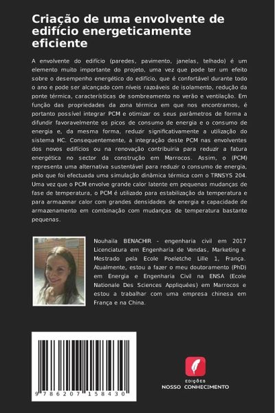 A envolvente do edifício (paredes, pavimento, janelas, telhado) é um elemento muito importante do projeto, uma vez que pode ter um efeito sobre o desempenho energético do edifício, que é confortável durante todo o ano e pode ser alcançado com níveis razoáveis de isolamento, redução da ponte térmica, características de sombreamento no verão e ventilação. Em função das propriedades da zona térmica em que nos encontramos, é portanto possível integrar PCM e otimizar os seus parâmetros de forma a difundir favoravelmente os picos de consumo de energia e o consumo de energia e, da mesma forma, reduzir significativamente a utilização do sistema HC. Consequentemente, a integração deste PCM nas envolventes dos novos edifícios ou na renovação contribuiria para reduzir a fatura energética no sector da construção em Marrocos. Assim, o (PCM) representa uma alternativa sustentável para reduzir o consumo de energia, pelo que foi efectuada uma simulação dinâmica térmica com o TRNSYS 204. Uma vez que o PCM envolve grande calor latente em pequenas mudanças de fase de temperatura, o PCM é utilizado para estabilização da temperatura e para armazenar calor com grandes densidades de energia e capacidade de armazenamento em combinação com mudanças de temperatura bastante pequenas.
