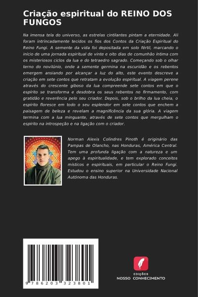 Na imensa tela do universo, as estrelas cintilantes pintam a eternidade. Ali foram intrincadamente tecidos os fios dos Contos da Criação Espiritual do Reino Fungi. A semente da vida foi depositada em solo fértil, marcando o início de uma jornada espiritual de vinte e oito dias de comunhão íntima com os misteriosos ciclos da lua e do tetraedro sagrado. Começando sob o olhar terno do novilúnio, onde a semente germina na escuridão e os rebentos emergem ansiando por alcançar a luz do alto, este evento descreve a criação em sete contos que retratam a evolução espiritual. A viagem perene através do crescente giboso da lua compreende sete contos em que o espírito se transforma e desdobra os seus rebentos no firmamento, com gratidão e reverência pelo seu criador. Depois, sob o brilho da lua cheia, o espírito floresce em todo o seu esplendor em sete contos que enchem a paisagem de beleza e revelam a magnificência da sua glória. A viagem termina com a lua minguante, através de sete contos que mergulham o espírito na introspeção e na ligação com o criador.