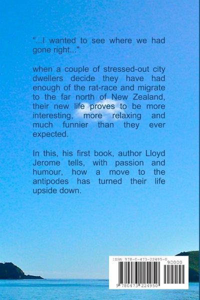 This is Lloyd Jerome's first book. It charts, with gentle humour, the progress of Lloyd, his wife, Laura and their pets, from a luxurious and complicated, stress-laden life in Glasgow, Scotland, to their new home in the depths of rural New Zealand. In time, they come to terms with life on the farm, and the delights and tribulations of living in one of the most beautiful and abundant regions of the world, and can look back with contentment on the choices they made that took them there.