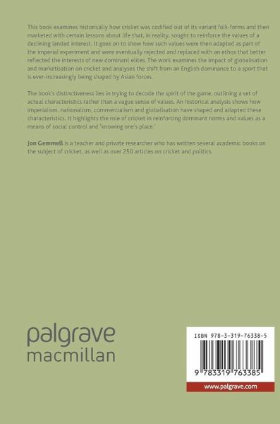 The book's distinctiveness lies in trying to decode the spirit of the game, outlining a set of actual characteristics rather than a vague sense of values. An historical analysis shows how imperialism, nationalism, commercialism and globalisation have shaped and adapted these characteristics. As such it will be of interest to students and scholars of sport sociology, post-colonialism, globalisation as well as those with an interest in the game of cricket and sport more generally.