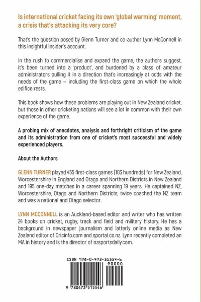 Is international cricket facing its own ‘global warming’ moment, a crisis that’s attacking its very core? That’s the question posed by Glenn Turner and co-author Lynn McConnell in this insightful insider’s account. In the rush to commercialise and expand the game, the authors suggest, it’s been turned into a ‘product’, and burdened by a class of amateur administrators pulling it in a direction that’s increasingly at odds with the needs of the game — including the first-class game on which the whole edifice rests. This book shows how these problems are playing out in New Zealand cricket, but those in other cricketing nations will see a lot in common with their own experience of the game. A probing mix of anecdotes, analysis and forthright criticism of the game and its administration from one of cricket’s most successful and widely experienced players. About the Authors Glenn Turner played 41 Tests, 41 ODIs, 455 first-class games and 195 one-day matches in a career spanning 19 years and captained NZ, Worcestershire, Otago and Northern Districts. He twice coached the NZ team, including their only Test series win in Australia in 1985-86, and was a national and Otago selector. Lynn McConnell is an Auckland-based editor and writer who has written 24 books on cricket, rugby, track and field and military history. He has a background in newspaper journalism and latterly online media as New Zealand editor of Cricinfo and Sportal. Lynn recently completed an MA in history and is the director of NZSportsDaily.