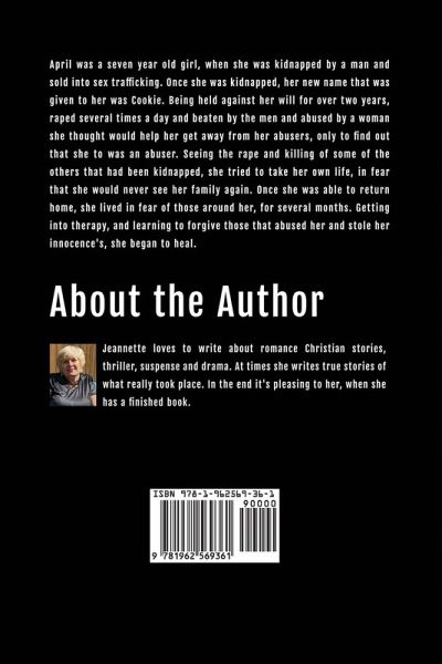 Picked up walking home from school and Sold into sex trafficking as a seven year old child, her life was forever changed. Wondering if she will ever see her family again. Cookie decides to take her own life. But when suicide does not happen, her life takes on more pain and heart ache from the evil of rape that happened.