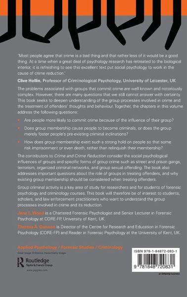 Crime and Crime Reduction seeks to deepen our understanding of the group processes involved in criminal activity, and also in the treatment of offenders' behaviour.